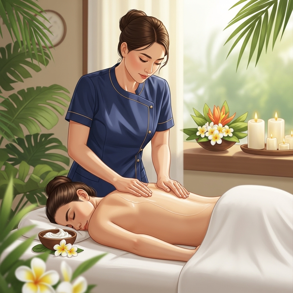 During Hawaiian massage we perform firm and repetitive movements throughout the body. Massage is done with forearm technique and hot coconut oil.